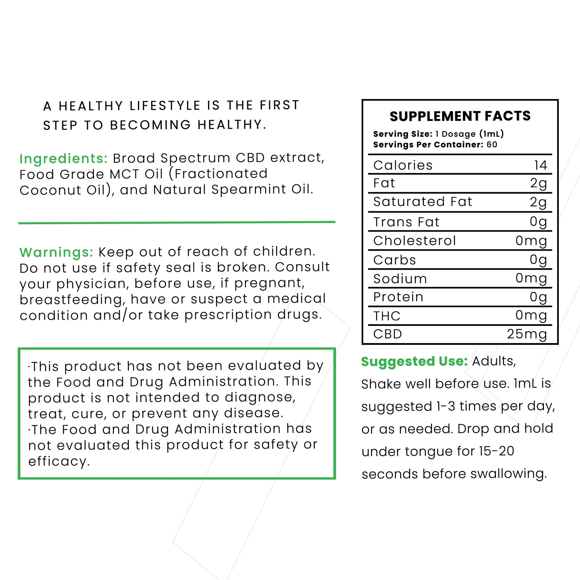 Ingredients: Hemp Extract, Food Grade MCT Oil (Fractionated Coconut Oil), and Natural Spearmint Oil